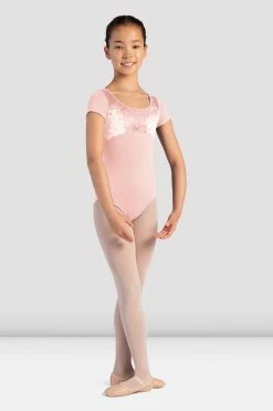 Our Girls Andie Cap Sleeve Leotard features a scooped neck with a velvet bodice and mesh panelled back. Part of our Holiday Velvet Collection featuring beautifully crushed velvet detail in a palette of sweet and stylish colors.