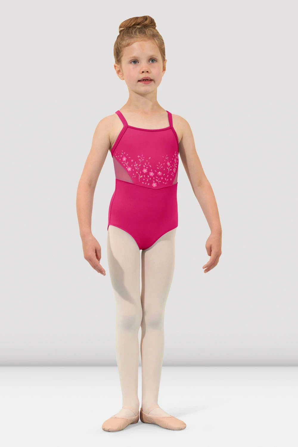 Our Girls Bianca Camisole Leotard features a mesh, cross back design with a cut out back pane, finished with a flower vine printed bodice. Part of our BLOCH Vine Collection featuring a delicate cascading print in tonal colorways which complement each unique design.