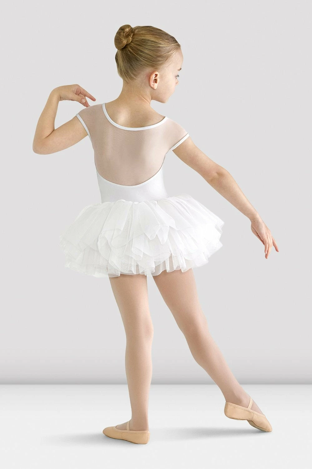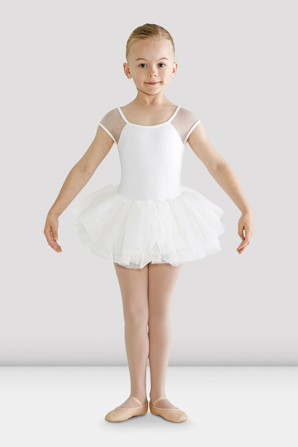 Your little dancer will love to twirl and spin round theΒ studioΒ in this sweet tutu leotard dress! Mesh cap sleeves continue into a mesh back, complete with scoop front and back necklines. The attached, triple layered tulle skirt is a nod to a traditional ballet aesthetic.