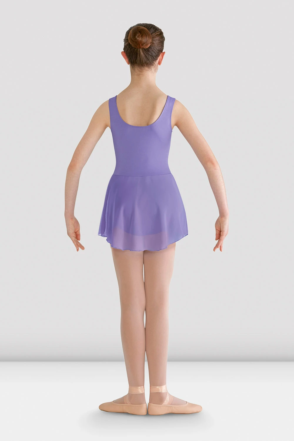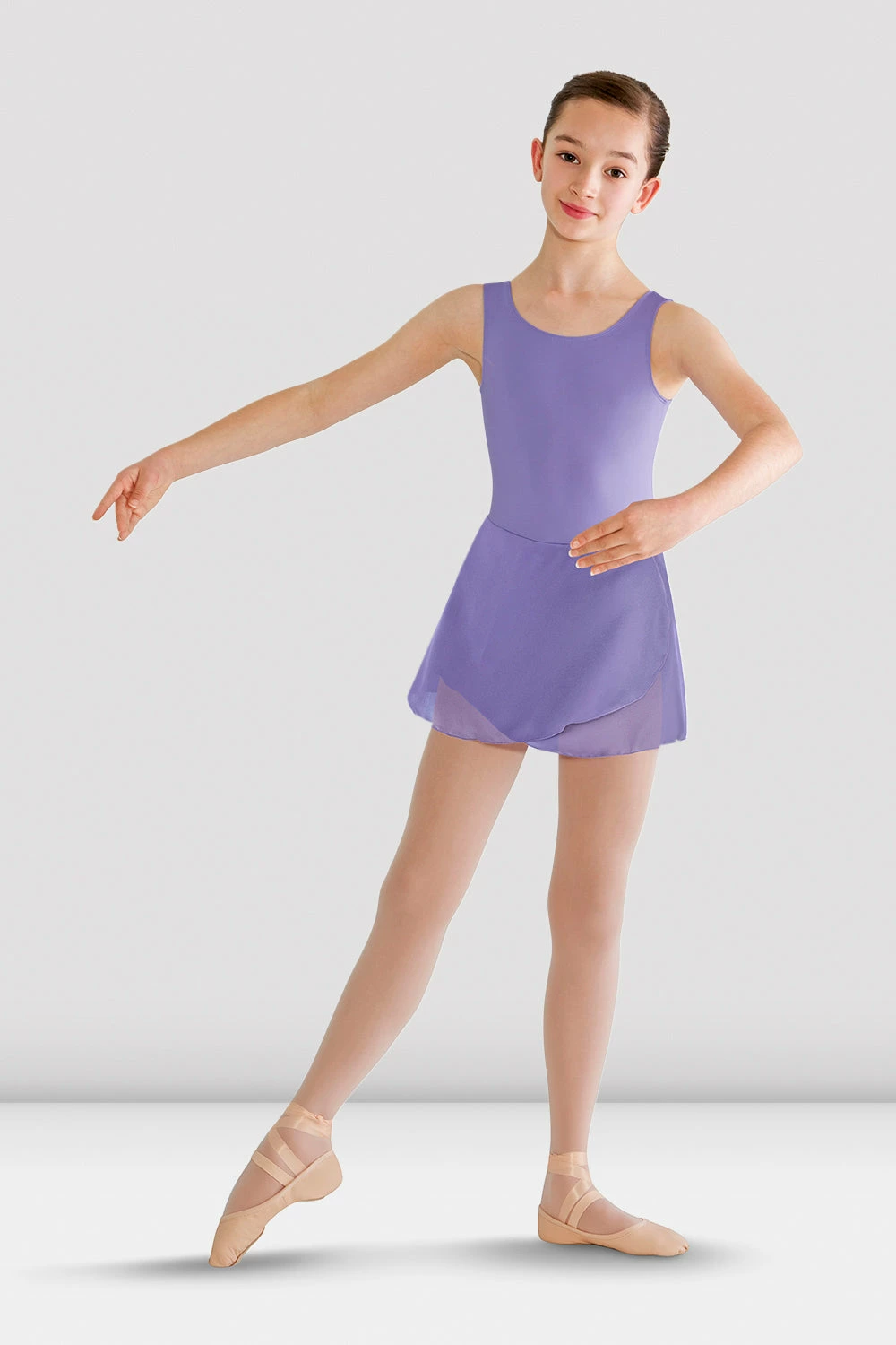 Perfect for the studio and the stage! This classic tank leotard dress features a scoop front and back, as well as an attached Georgette skirt, in the same shade, which falls gently from the hipย